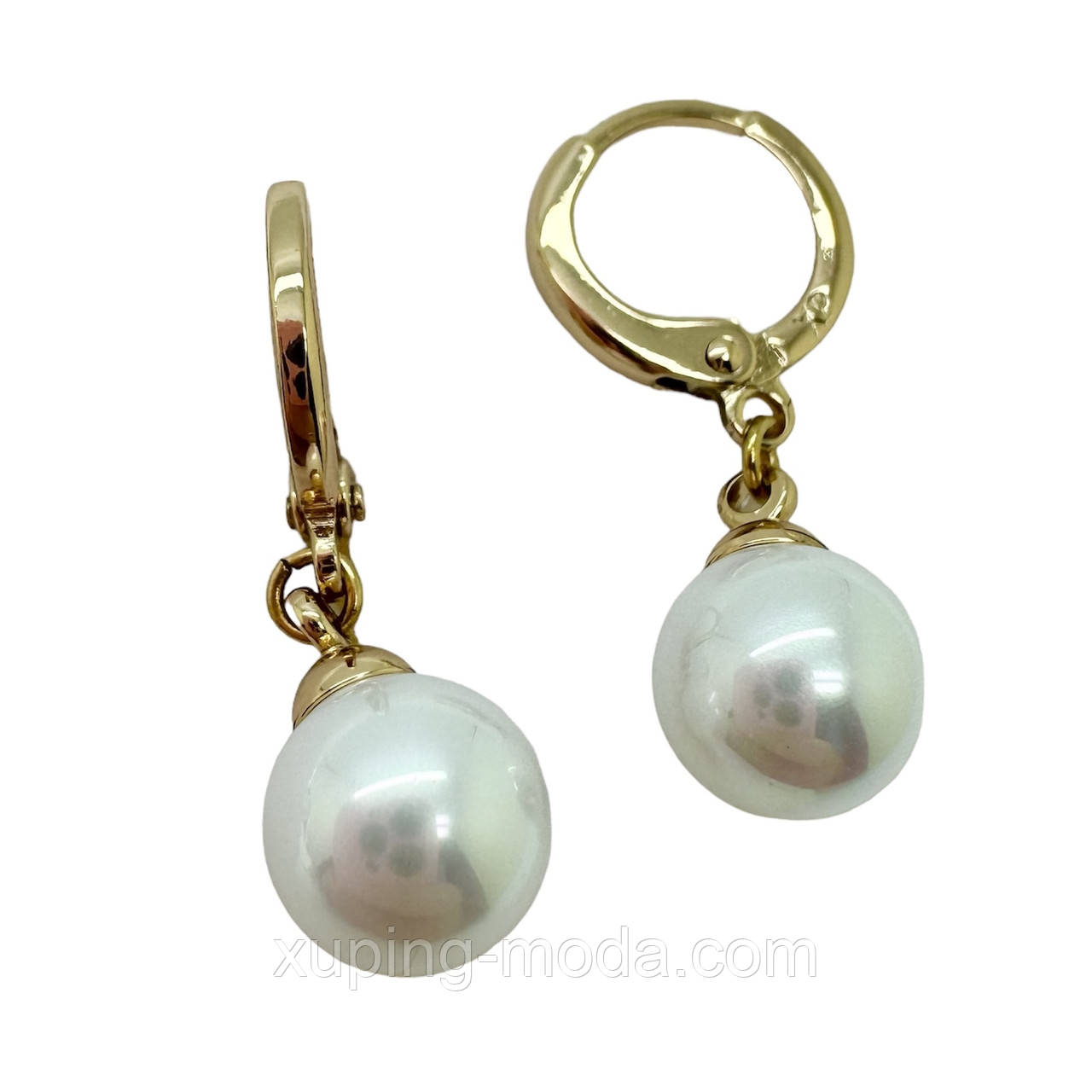 Сережки з перлинами ксюпінг. 25х10 мм. 18 к, фото 1